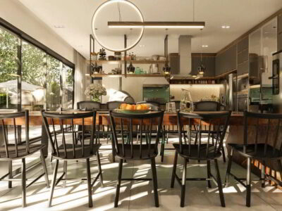 No interior, a casa conta com 3 quartos, todos suítes, totalizando 5 banheiros. A suíte master é um destaque, proporcionando um espaço generoso e a privacidade que os moradores merecem. A garagem, com capacidade para 2 veículos, oferece praticidade e segurança, atendendo às necessidades de uma família moderna.