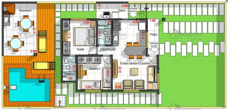 A Casa 164 da Só Projetos é uma excelente escolha para quem busca conforto e praticidade em um projeto compacto, ideal para terrenos a partir de 9,5 metros de frente por 20 metros de profundidade. Com uma distribuição inteligente dos espaços, oferece comodidade e lazer em uma área bem aproveitada.