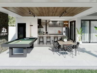Ao entrar, você será recebido por uma garagem espaçosa para dois carros, oferecendo comodidade e segurança. A área social é projetada para integrar a sala de TV, a sala de jantar e a cozinha, criando um ambiente amplo e fluido, ideal para momentos de convivência e lazer. A iluminação natural se espalha por todo o ambiente, ampliando ainda mais a sensação de acolhimento e espaço.