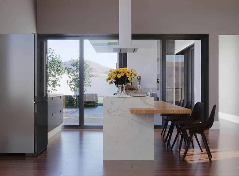 - Ambientes integrados, como cozinha, sala de jantar e sala de TV