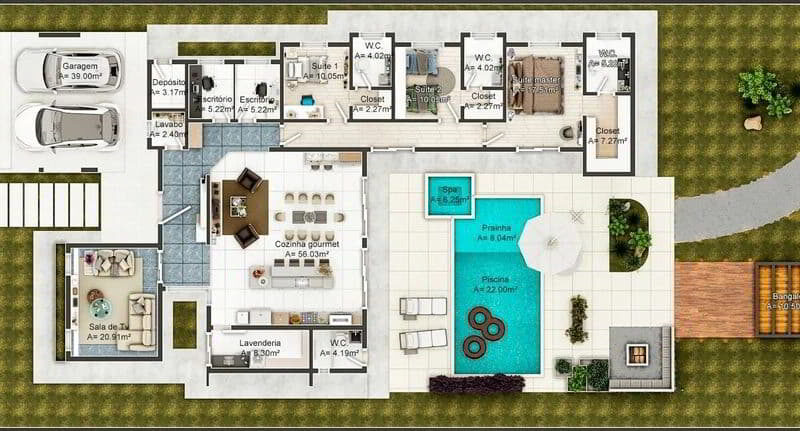 - Bangalô: Um espaço extra para descanso ou atividades informais.