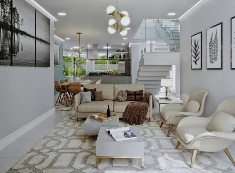 - Sala de Estar e Jantar: O conceito aberto permite a fluidez entre os ambientes, proporcionando uma sensação de amplitude. A sala de estar é acolhedora e equipada com iluminação natural, enquanto a sala de jantar segue o mesmo design, criando um espaço perfeito para a convivência familiar e social.